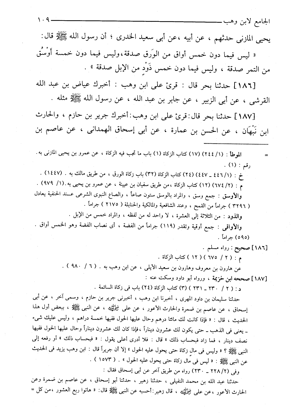 ١٨٧-[١٨٣] حدثنا بحر قال: قرئ على ابن وهب: أخبرك جرير بن حازم، والحارث ابن نبهان، عن الحسن بن عمارة، عن أبي إسحاق الهمداني، عن عاصم بن ⦗١١٠⦘ ضمرة، والحارث بن عبد الله، عن علي بن أبي طالب، عن رسول الله صلى الله عليه وسلم أنه قال: