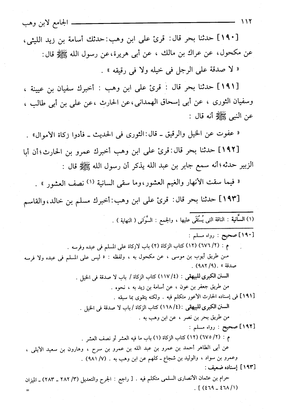 ١٩١-[١٨٧] حدثنا بحر قال: قرئ على ابن وهب: أخبرك سفيان بن عيينة، وسفيان الثوري، عن أبي إسحاق الهمداني، عن الحارث، عن علي بن أبي طالب، عن النبي صلى الله عليه وسلم أنه قال: