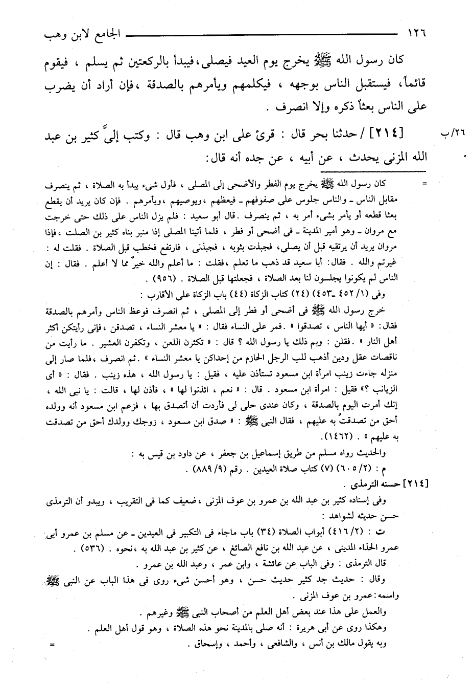 ٢١٤-[٢١٠] حدثنا بحر قال: قرئ على ابن وهب قال: وكتب إلي كثير بن عبد الله المزني يحدث، عن أبيه، عن جده أنه قال: