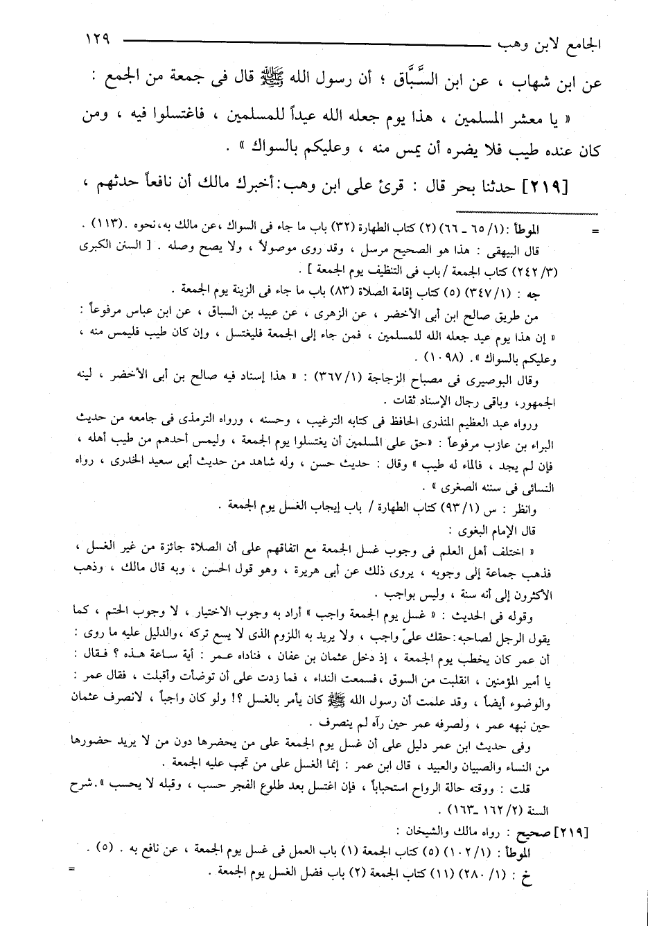 ٢١٩-[٢١٥] حدثنا بحر قال: قرئ على ابن وهب: أخبرك مالك أن نافعاً حدثهم، ⦗١٣٠⦘ عن عبد الله بن عمر؛ أن رسول الله صلى الله عليه وسلم قال: