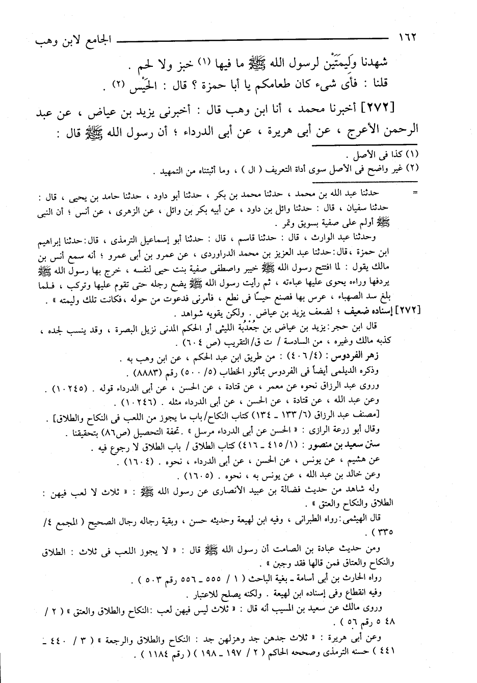 ٢٧٢-[٢٦٥] أخبرنا محمد، أنا ابن وهب قال: أخبرني يزيد بن عياض، عن عبد الرحمن الأعرج، عن أبي هريرة، عن أبي الدرداء؛ أن رسول الله صلى الله عليه وسلم قال: