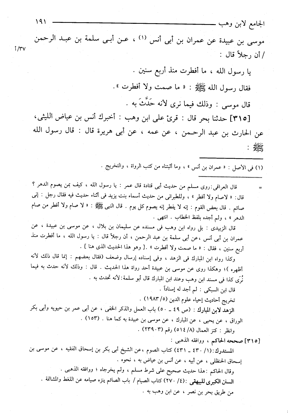 ٣١٥-[٣٠٧] حدثنا بحر قال: قرئ على ابن وهب: أخبرك أنس بن عياض الليثي، عن الحارث بن عبد الرحمن، عن عمه، عن أبي هريرة قال: قال رسول الله صلى الله عليه وسلم: