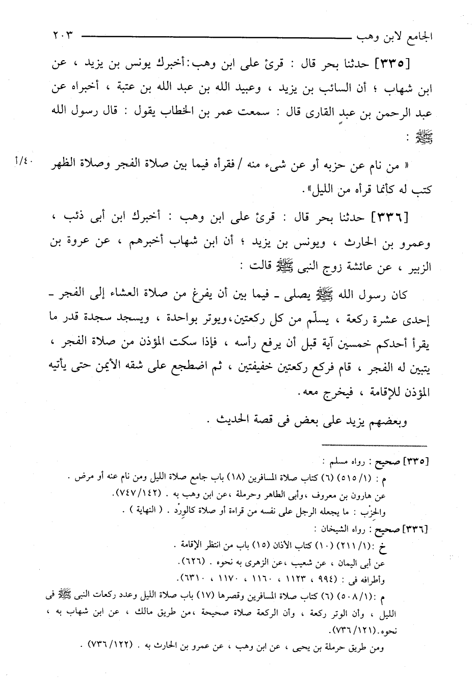 ٣٣٥-[٣٢٦] حدثنا بحر قال: قرئ على ابن وهب: أخبرك يونس بن يزيد، عن ابن شهاب؛ أن السائب بن يزيد، وعبيد الله بن عبد الله بن عتبة، أخبراه عن عبد الرحمن بن عبدٍ القاري قال: سمعت عمر بن الخطاب يقول: قال رسول الله صلى الله عليه وسلم: