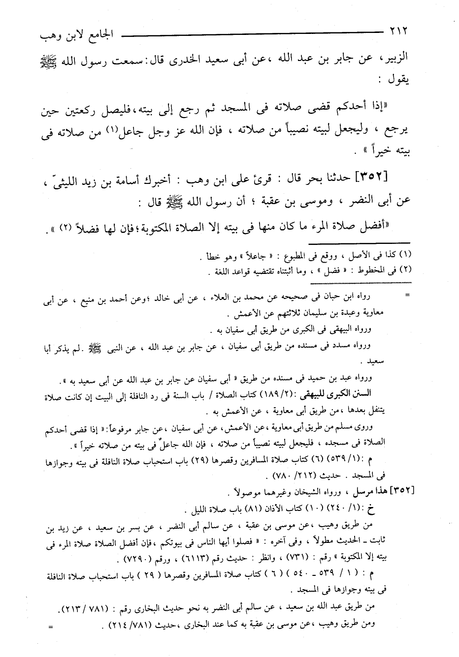 ٣٥٢-[٣٤١] حدثنا بحر قال: قرئ على ابن وهب: أخبرك أسامة بن زيد الليثي، عن أبي النضر، وموسى بن عقبة؛ أن رسول الله صلى الله عليه وسلم قال:
