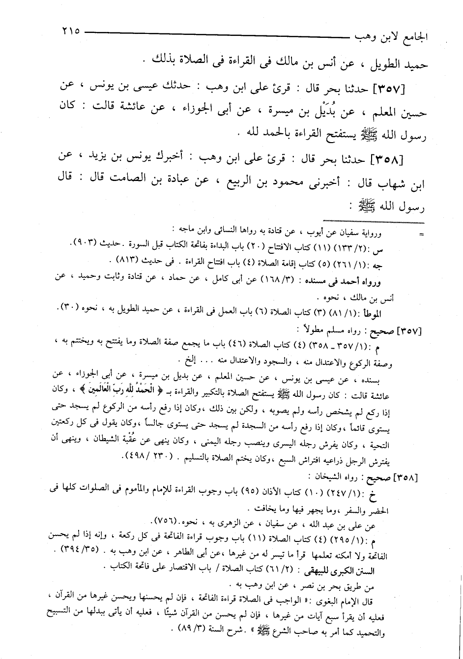 ٣٥٧-[٣٤٦] حدثنا بحر قال: قرئ على ابن وهب: حدثك عيسى بن يونس، عن حسين المعلم، عن بديل بن ميسرة، عن أبي الجوزاء، عن عائشة قالت: كان رسول الله صلى الله عليه وسلم يستفتح القراءة بالحمد لله.
