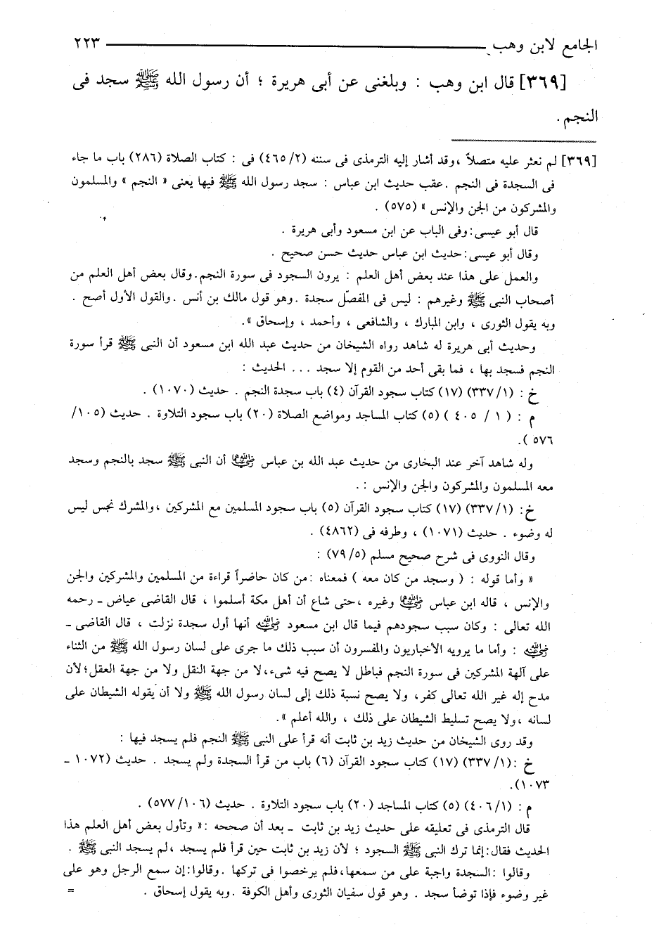 ٣٦٩- قال ابن وهب: وبلغني عن أبي هريرة؛ أن رسول الله صلى الله عليه وسلم سجد في النجم.
