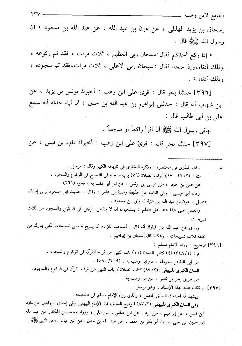 ٣٩٧-[٣٨٣] حدثنا بحر قال: قرئ على ابن وهب: حدثك (¬١) داود بن قيس، عن ⦗٢٣٨⦘ إبراهيم، عن أبيه، عن النبي صلى الله عليه وسلم نحوه.
