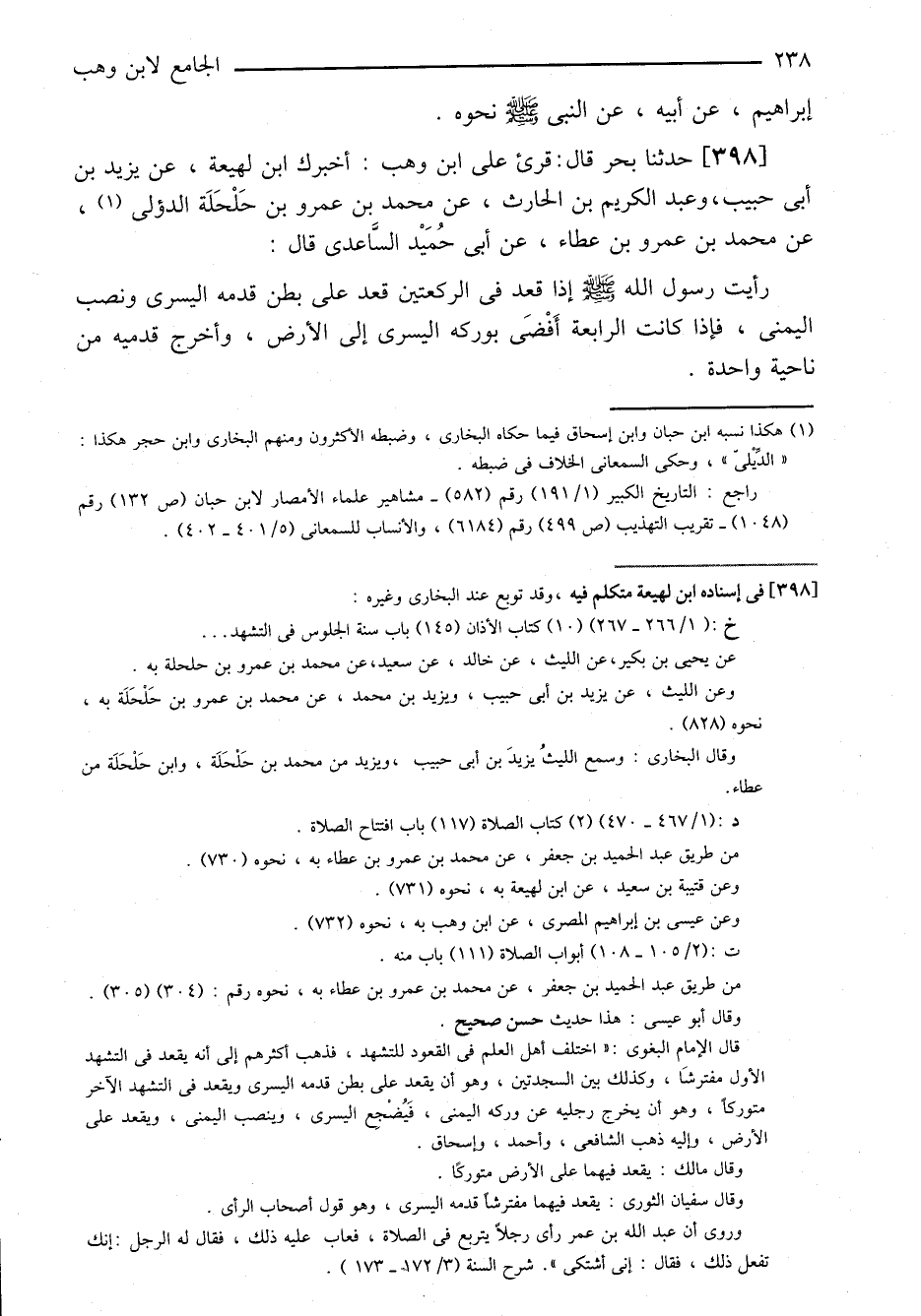 ٣٩٨-[٣٨٤] حدثنا بحر قال: قرئ على ابن وهب: أخبرك ابن لهيعة، عن يزيد بن أبي حبيب، وعبد الكريم بن الحارث، عن محمد بن عمرو بن حلحلة الدؤلي، عن محمد بن عمرو بن عطاء، عن أبي حميد الساعدي قال: