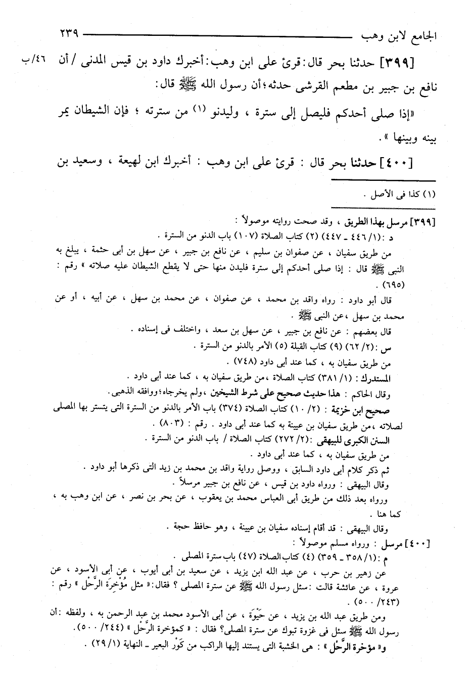٣٩٩-[٣٨٥] حدثنا بحر قال: قرئ على ابن وهب: أخبرك داود بن قيس المدني أن نافع بن جبير بن مطعم القرشي حدثه؛ أن رسول الله صلى الله عليه وسلم قال: