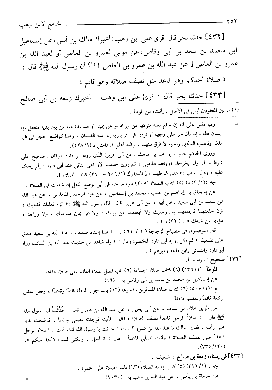 ٤٣٢-[٤١٥] حدثنا بحر قال: قرئ على ابن وهب: أخبرك مالك بن أنس، عن إسماعيل ابن محمد بن سعد بن أبي وقاص، عن مولى لعمرو بن العاص أو لعبد الله بن عمرو بن العاص [عن عبد الله بن عمرو بن العاص] (¬١) أن رسول الله صلى الله عليه وسلم قال: