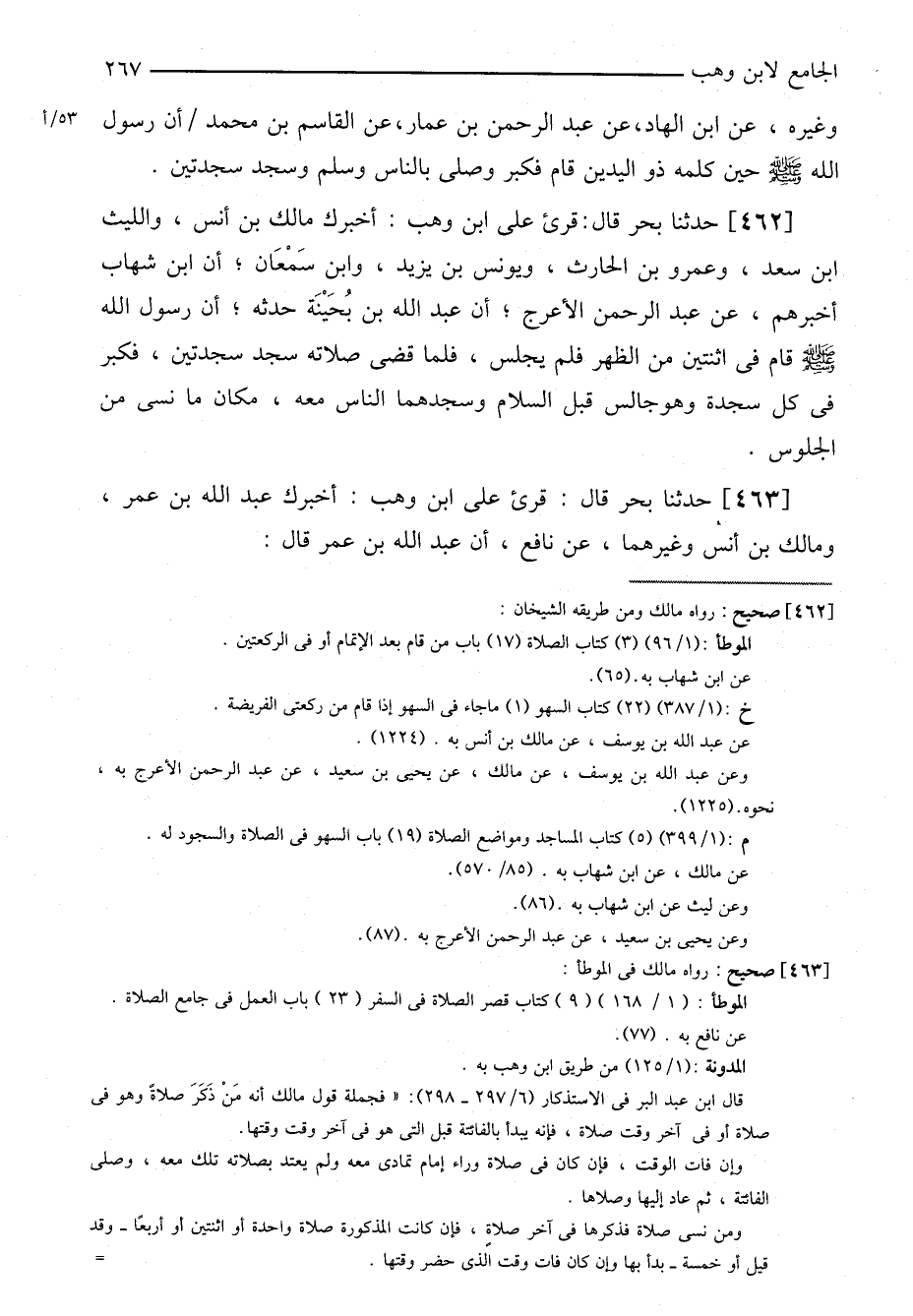 ٤٦٢-[٤٤١] حدثنا بحر قال: قرئ على ابن وهب: أخبرك مالك بن أنس، والليث ابن سعد، وعمرو بن الحارث، ويونس بن يزيد، وابن سمعان؛ أن ابن شهاب أخبرهم، عن عبد الرحمن الأعرج؛ أن عبد الله بن بحينة حدثه؛ أن رسول الله صلى الله عليه وسلم قام في اثنتين من الظهر فلم يجلس، فلما قضى صلاته سجد سجدتين، فكبر في كل سجدة وهو جالس قبل السلام وسجدهما الناس معه، مكان ما نسي من الجلوس.