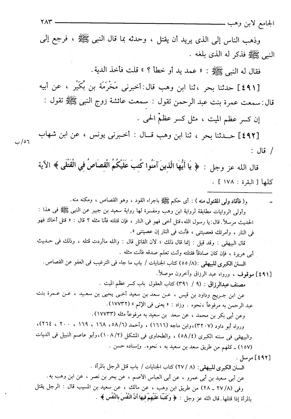 ٤٩١-[٤٦٤] حدثنا بحر، ثنا ابن وهب قال: أخبرني مخرمة بن بكير، عن أبيه قال: سمعت عمرة بنت عبد الرحمن تقول: سمعت عائشة زوج النبي صلى الله عليه وسلم تقول: