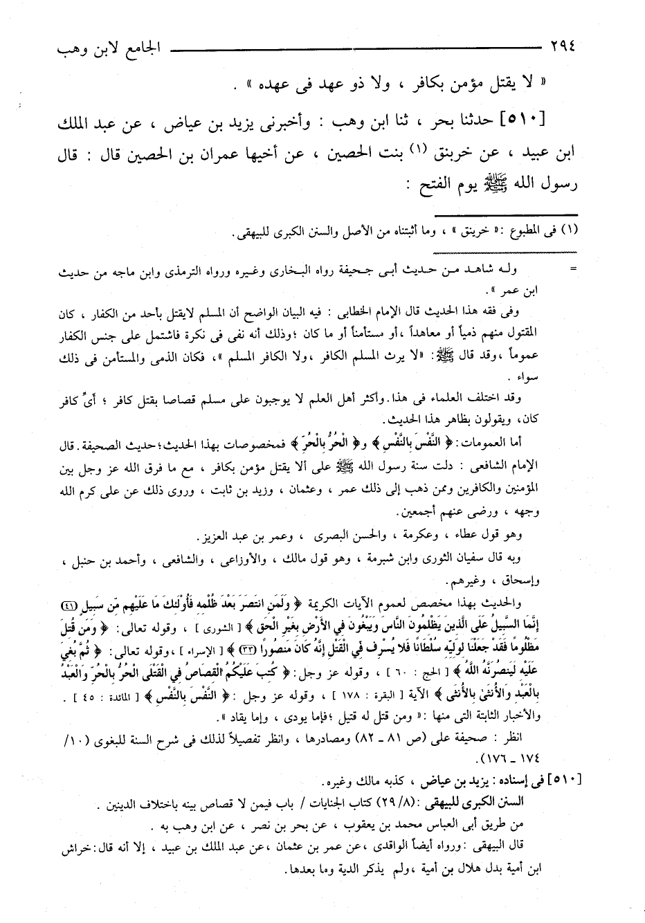 ٥١٠-[٤٨٢] حدثنا بحر، ثنا ابن وهب: وأخبرني يزيد بن عياض، عن عبد الملك ابن عبيد، عن خربنق بنت الحصين، عن أخيها عمران بن الحصين قال: قال رسول الله صلى الله عليه وسلم يوم الفتح: