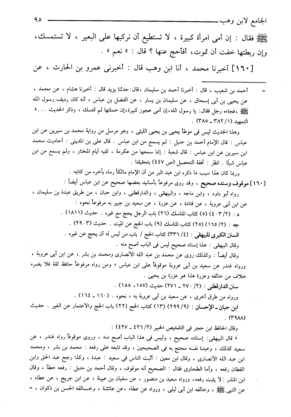 ١٦٠-[١٥٤] أخبرنا محمد، أنا ابن وهب قال: أخبرني عمرو بن الحارث، عن ⦗٩٦⦘ قتادة بن دعامة؛ أن سعيد بن جبير حدثه؛ أن عبد الله بن عباس مر به رجل يهل، يقول: