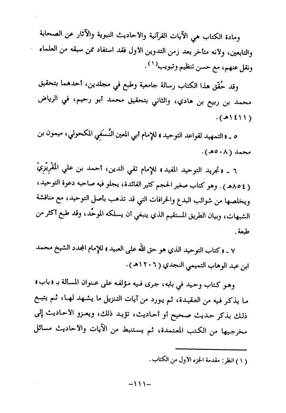 7- "كتاب التوحيد الذي هو حق الله على العبيد" للإمام المجدد الشيخ محمد بن عبد الوهاب التميمي النجدي "1206هـ".