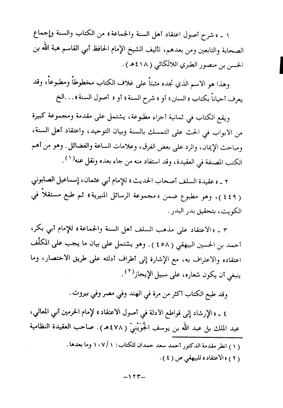 1- "شرح أصول اعتقاد أهل السنة والجماعة" من الكتاب والسنة وإجماع الصحابة والتابعين ومن بعدهم، تأليف الشيخ الإمام الحافظ أبي القاسم هبة الله بن الحسن بن منصور الطبري اللالكائي "418هـ".