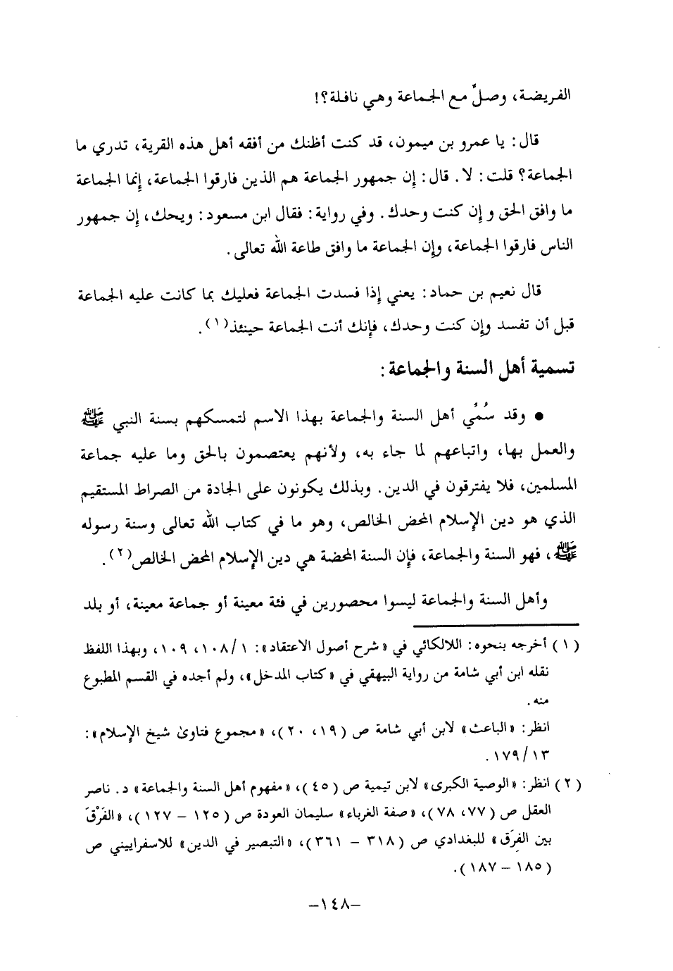 1 انظر: "الوصية الكبرى" لابن تيمية ص45، "مفهوم أهل السنة والجماعة" د. ناصر العقل ص77، 78، "صفة الغرباء" سليمان العودة ص125-127، "الفَرْق بين الفِرَق" للبغدادي ص318-361، "التبصير في الدين" للإسفراييني ص185-187.