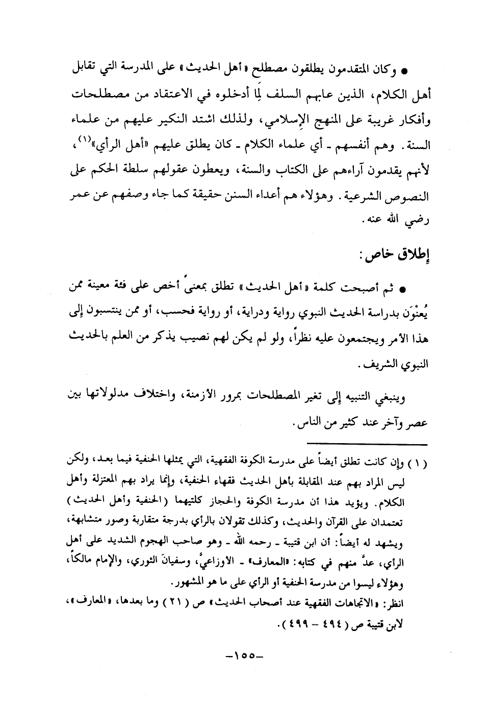وإذا كان الأئمة -يرحمهم الله- يطلقون على أهل الحديث -في الماضي- أنهم الفرقة الناجية والطائفة المنصورة، فإن اصطلاح أهل الحديث قد ضاقت دائرته عند الكثيرين حتى صار عَلَما على فئات من أهل الحديث، ولكنها ليست أهل الحديث كلهم.