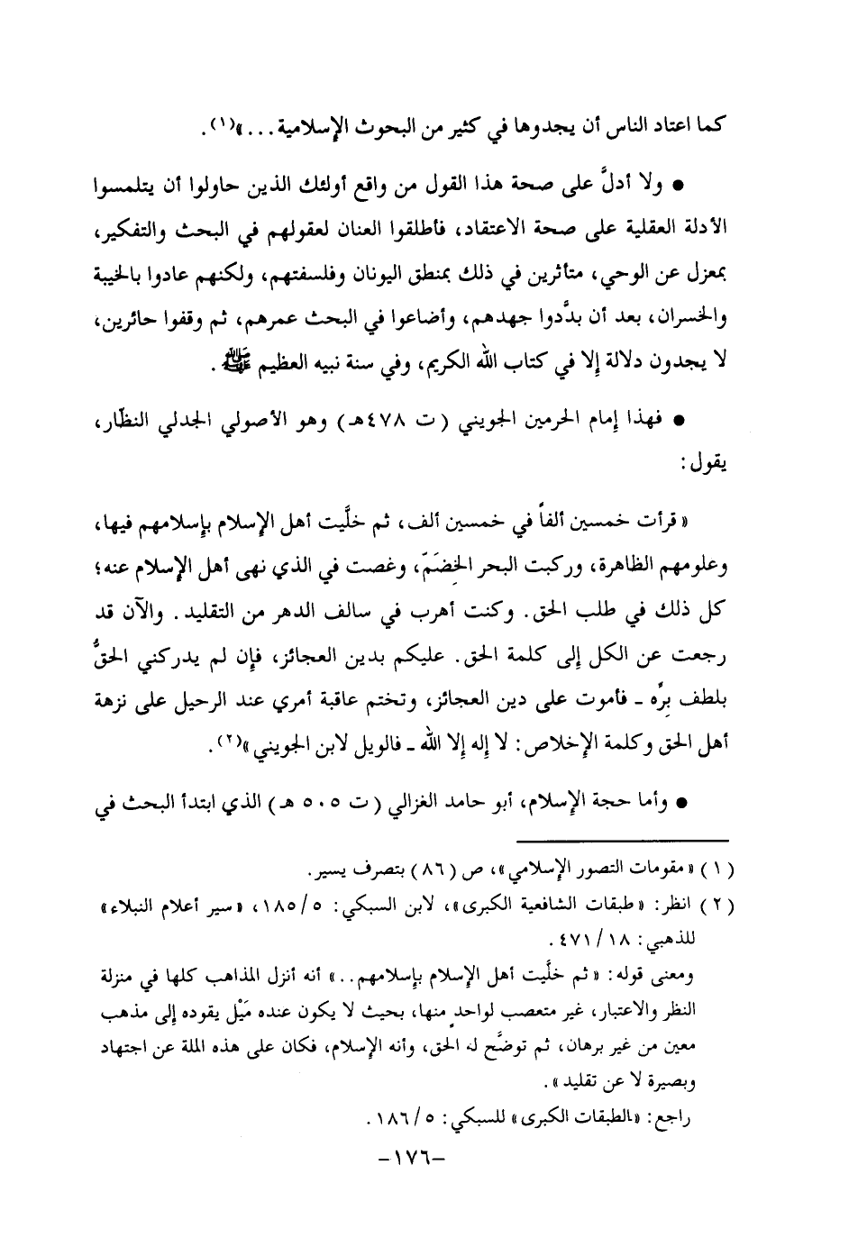 فهذا إمام الحرمين الجويني "ت 478هـ" وهو الأصولي الجدلي النظّار، يقول: