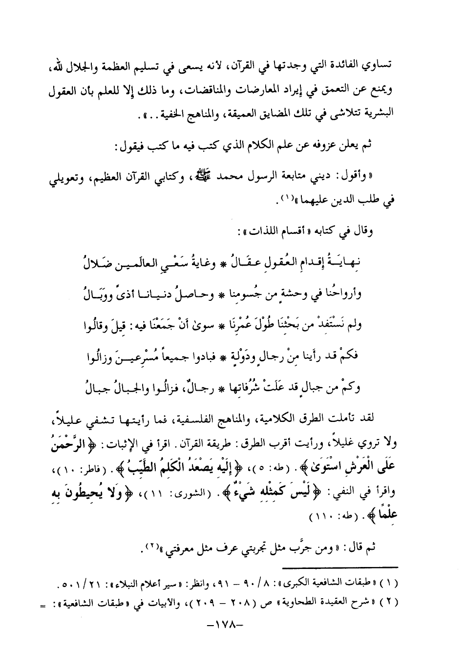 2 "شرح العقيدة الطحاوية" ص208-209، والأبيات في "طبقات الشافعية": 8/ 96، و"وفيات الأعيان": 4/ 250.