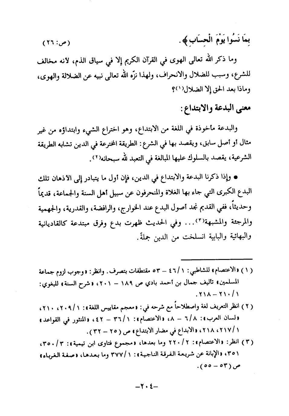 2 انظر التعريف لغة واصطلاحا مع شرحه في: "معجم مقاييس اللغة": 1/ 209، 210، "لسان العرب": 8/ 6-8، "الاعتصام": 1/ 36-42، "المنثور في القواعد" 1/ 217، 218، "الإبداع في مضارّ الابتداع" ص25-32.