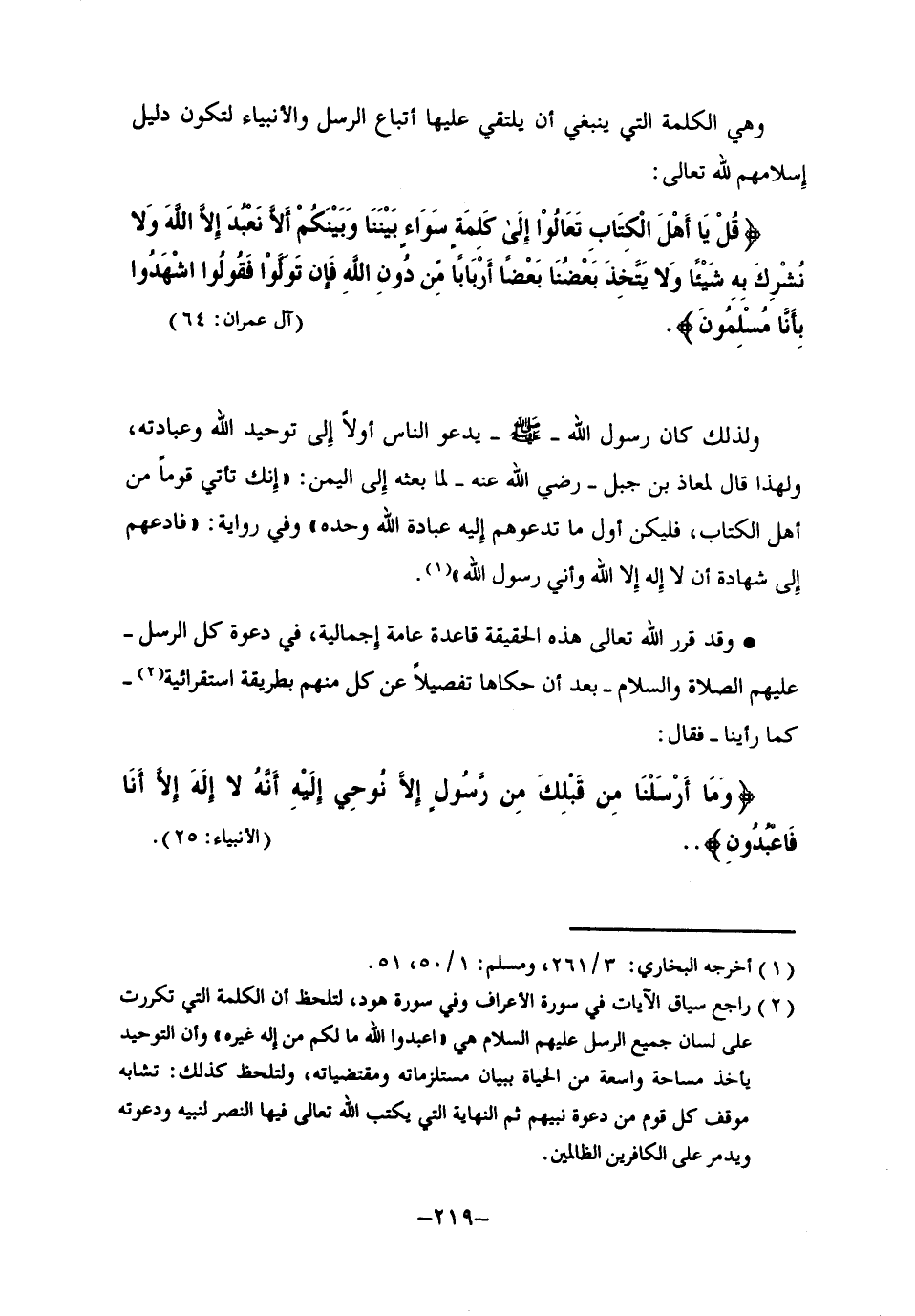 {قُلْ يَا أَهْلَ الْكِتَابِ تَعَالَوْا إِلَى كَلِمَةٍ سَوَاءٍ بَيْنَنَا وَبَيْنَكُمْ أَلَّا نَعْبُدَ إِلَّا اللَّهَ وَلا نُشْرِكَ بِهِ شَيْئًا وَلا يَتَّخِذَ بَعْضُنَا بَعْضًا أَرْبَابًا مِنْ دُونِ اللَّهِ فَإِنْ تَوَلَّوْا فَقُولُوا اشْهَدُوا بِأَنَّا مُسْلِمُونَ} [آل عمران: 64] .