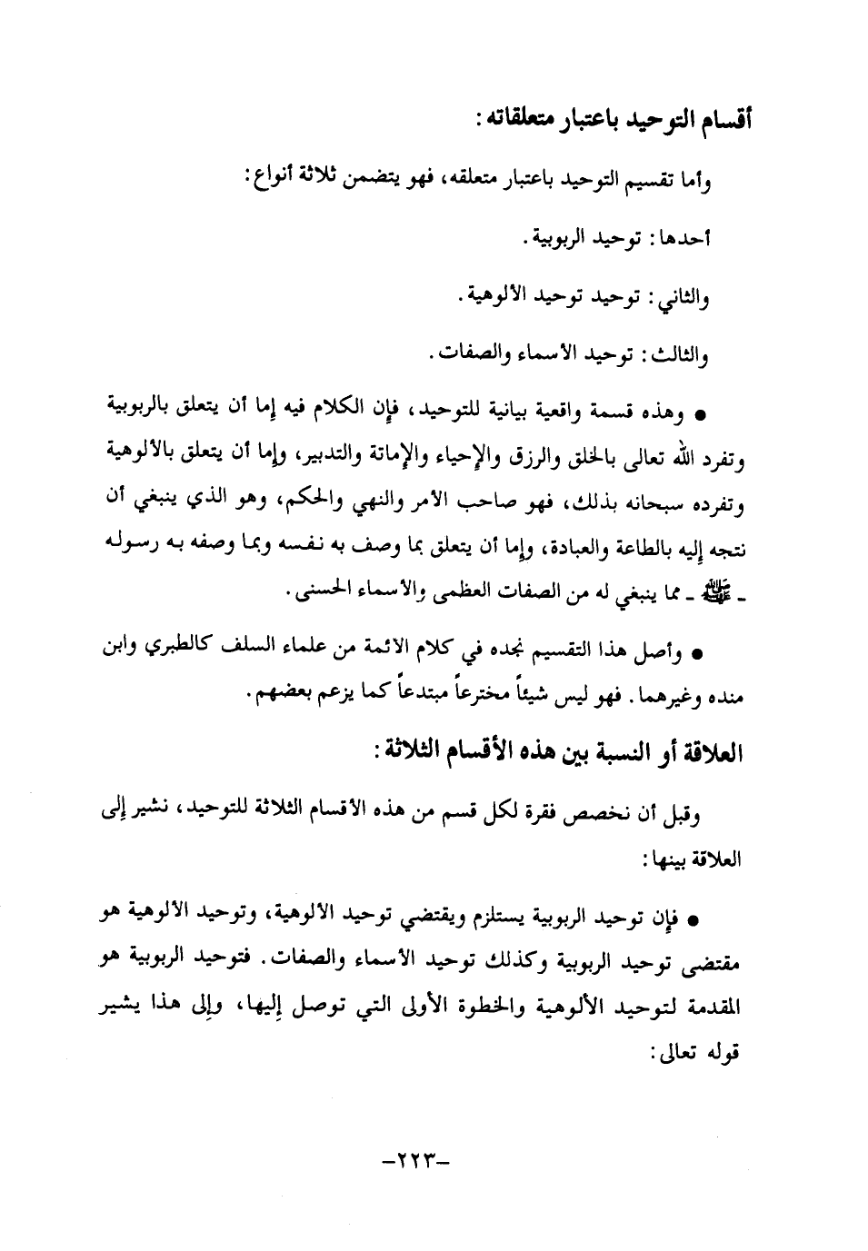 وقبل أن نخصّص فقرة لكل قسم من هذه الأقسام الثلاثة للتوحيد، نشير إلى العلاقة بينها: