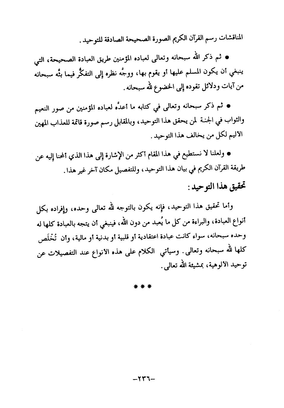 ولعلنا لا نستطيع في هذا المقام أكثر من الإشارة إلى هذا الذي ألمحنا إليه عن طريقة القرآن الكريم في بيان هذا التوحيد، وللتفصيل مكان آخر غير هذا.