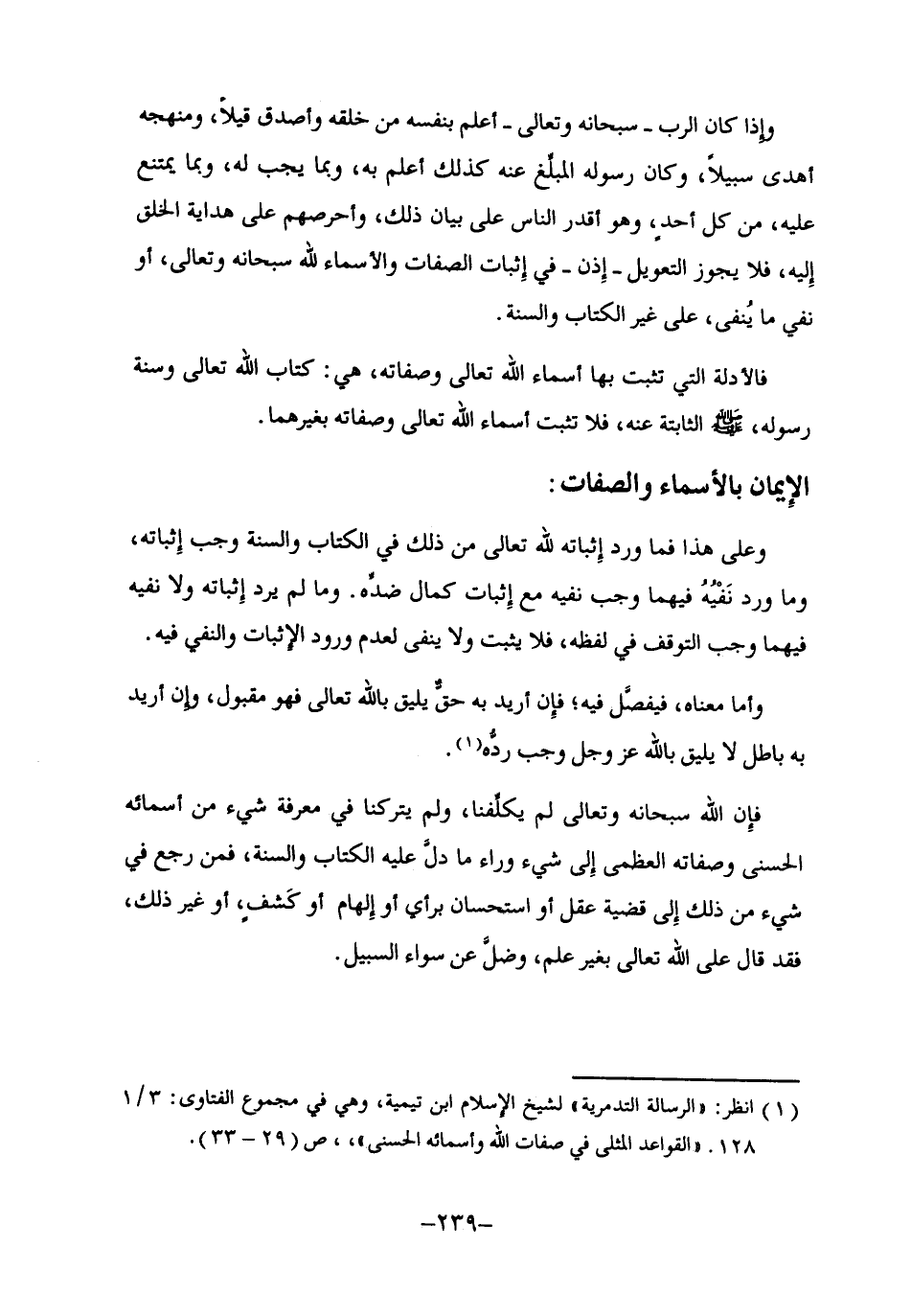 1 انظر: "الرسالة التدمرية" لشيخ الإسلام ابن تيمية، وهي في مجموع الفتاوى: 3/ 1281. "القواعد المثلى في صفات الله وأسمائه الحسنى"، ص29-33.