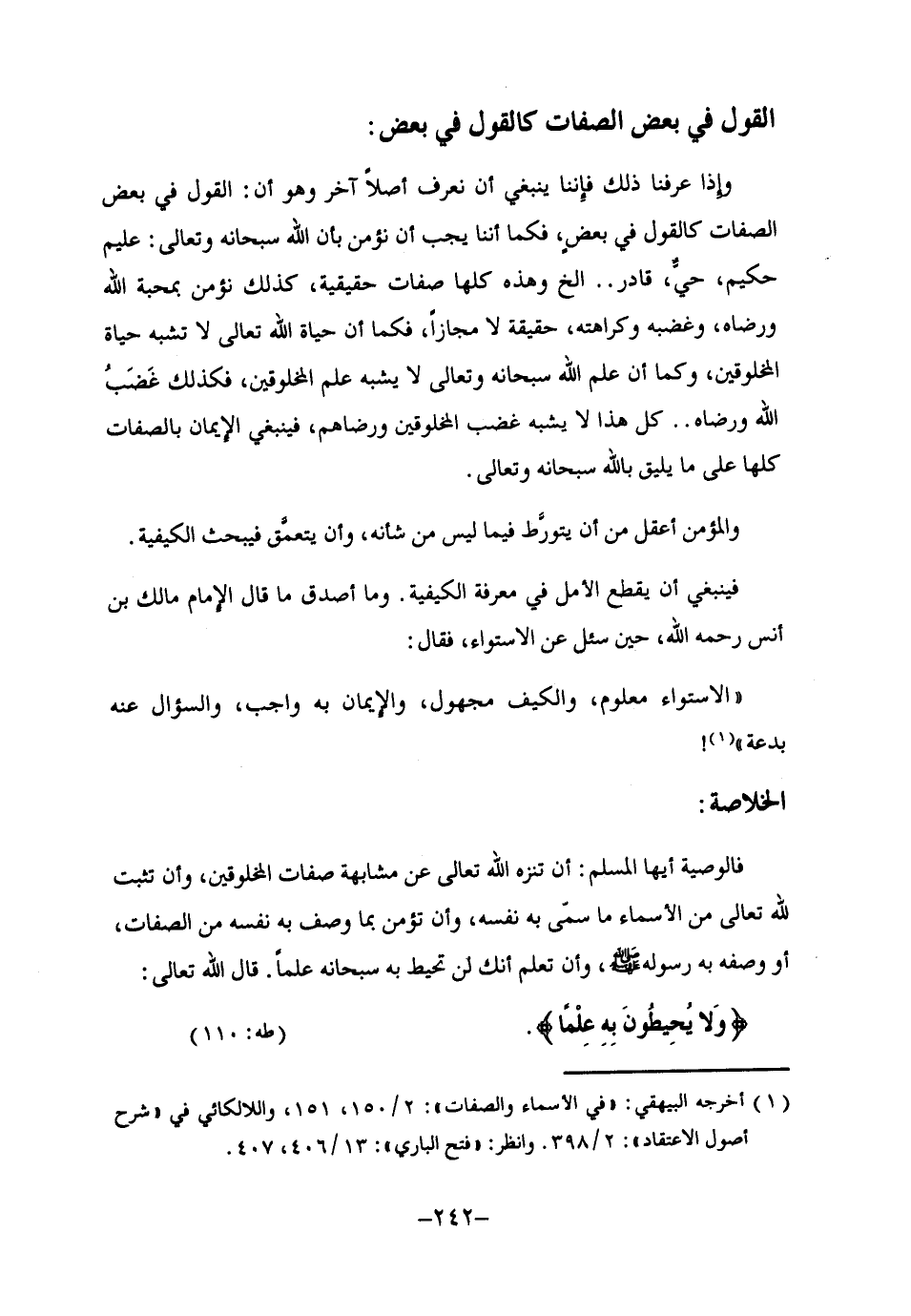 1 أخرجه البيهقي: "في الأسماء والصفات": 2/ 150، 151، واللالكائي في "شرح أصول الاعتقاد: 2/ 398. وانظر: "فتح الباري": 13/ 406، 407.