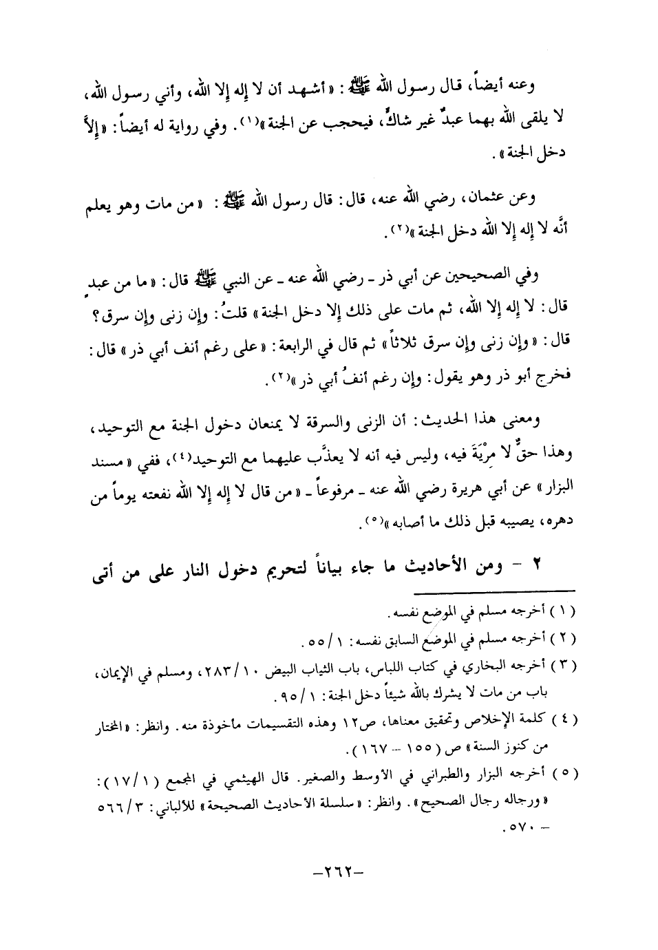 4 كلمة الإخلاص وتحقيق معناها، ص12, وهذه التقسيمات مأخوذة منه. انظر "المختار من كنوز السنة" ص155-167.