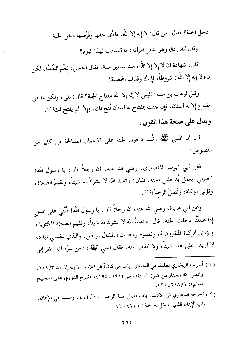 1 أخرجه البخاري تعليقا في الجنائز، باب من كان آخر كلامه: لا إله إلا الله 3/ 109. وانظر: "المختار من كنوز السنة"، ص191-194، "شرح النووي على صحيح مسلم": 1/ 218-220.