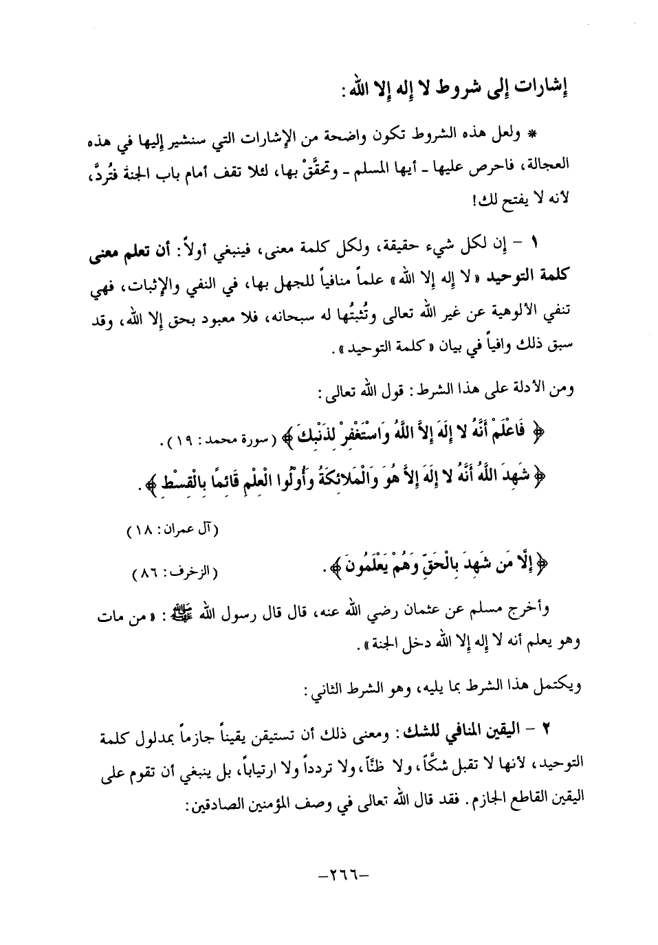 إشارات إلى شروط لا إله إلا الله: