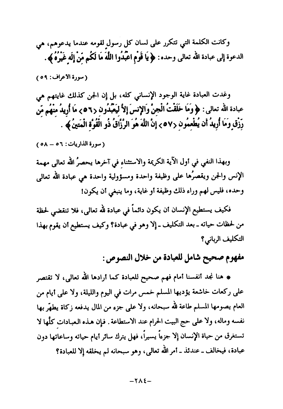 مفهوم صحيح شامل للعبادة من خلال النصوص:
