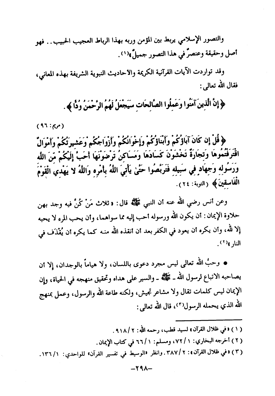 وقد تواردت الآيات القرآنية الكريمة والأحاديث النبوية الشريفة بهذه المعاني، فقال الله تعالى: