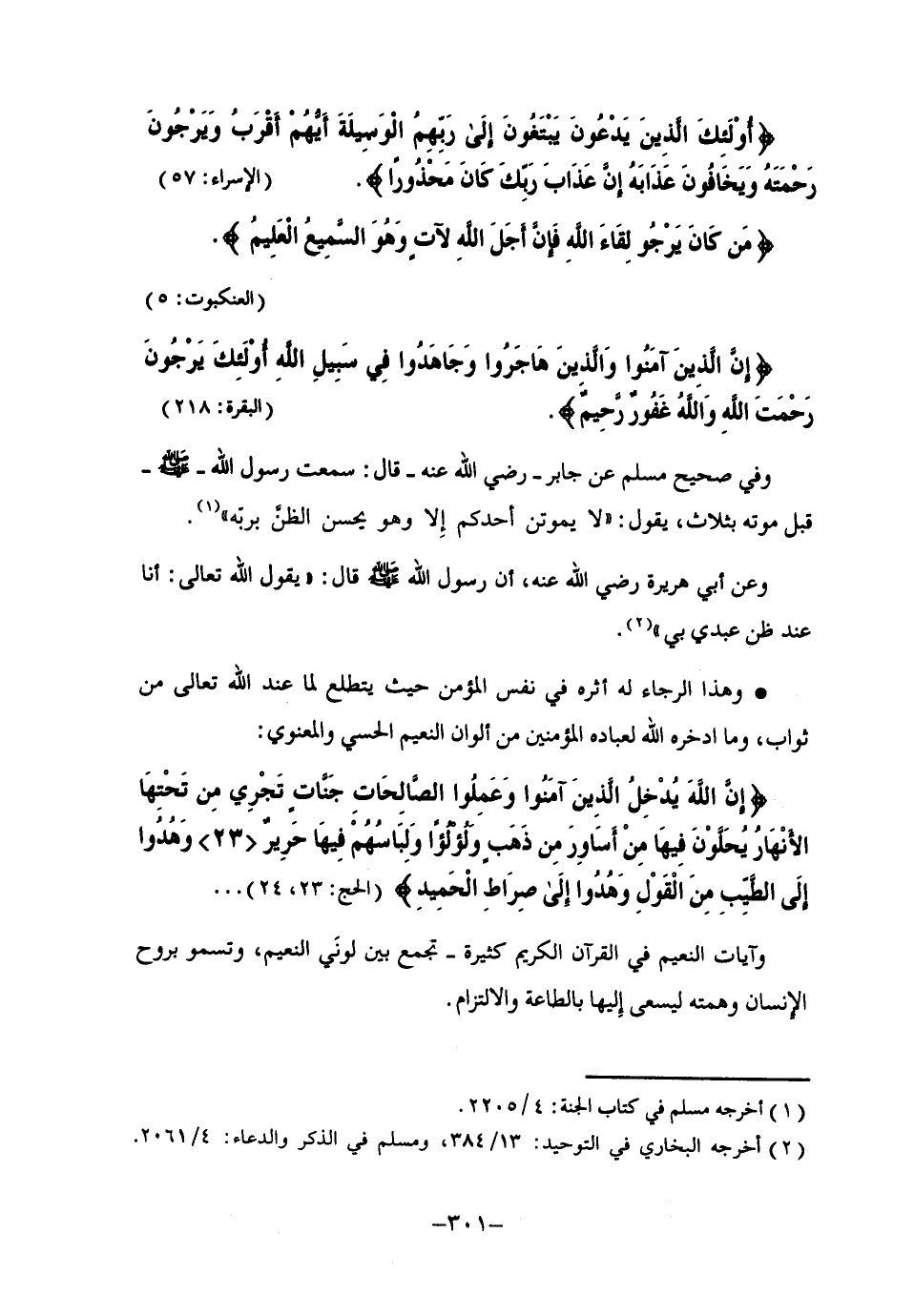 وهذا الرجاء له أثره في نفس المؤمن, حيث يتطلع لما عند الله تعالى من ثواب، وما ادّخره الله لعباده المؤمنين من ألوان النعيم الحسي والمعنوي:
