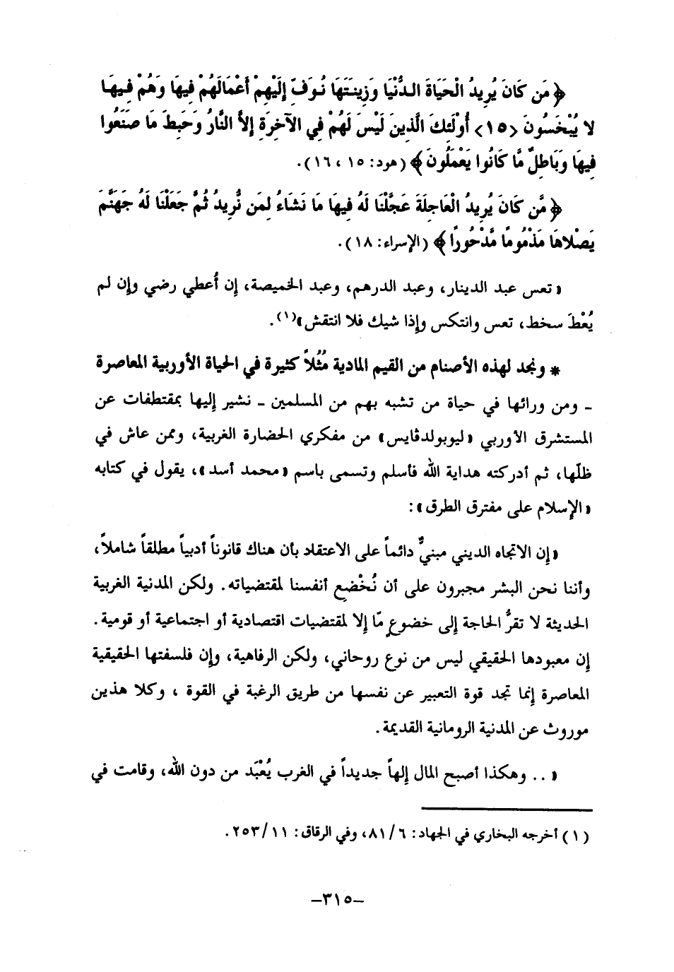 " ... وهكذا أصبح المال إلها جديدا في الغرب يعبد من دون الله، وقامت في