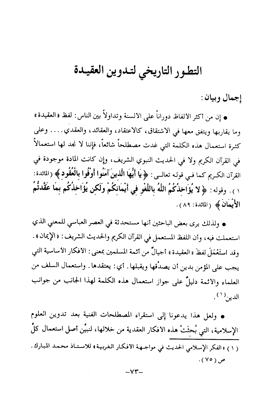 1 "الفكر الإسلامي الحديث في مواجهة الأفكار الغربية" للأستاذ محمد المبارك, ص75.