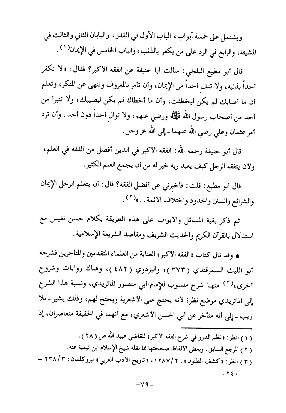 1 انظر: "نظم الدرر في شرح الفقه الأكبر" للقاضي عبيد الله ص28.