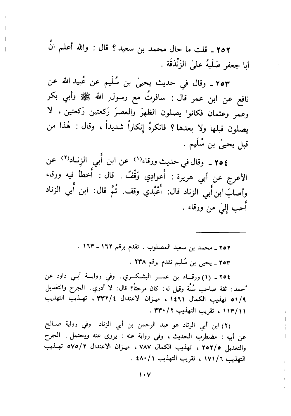 254 - وَقَالَ فِي حَدِيث وَرْقَاء عَن ابْن أبي الزِّنَاد عَن الْأَعْرَج عَن أبي هُرَيْرَة أعوادي وقف قَالَ أَخطَأ فِيهِ وَرْقَاء وَأصَاب ابْن أبي الزِّنَاد قَالَ أعبدي وقف ثمَّ قَالَ ابْن أبي الزِّنَاد أحب إِلَيّ من وَرْقَاء