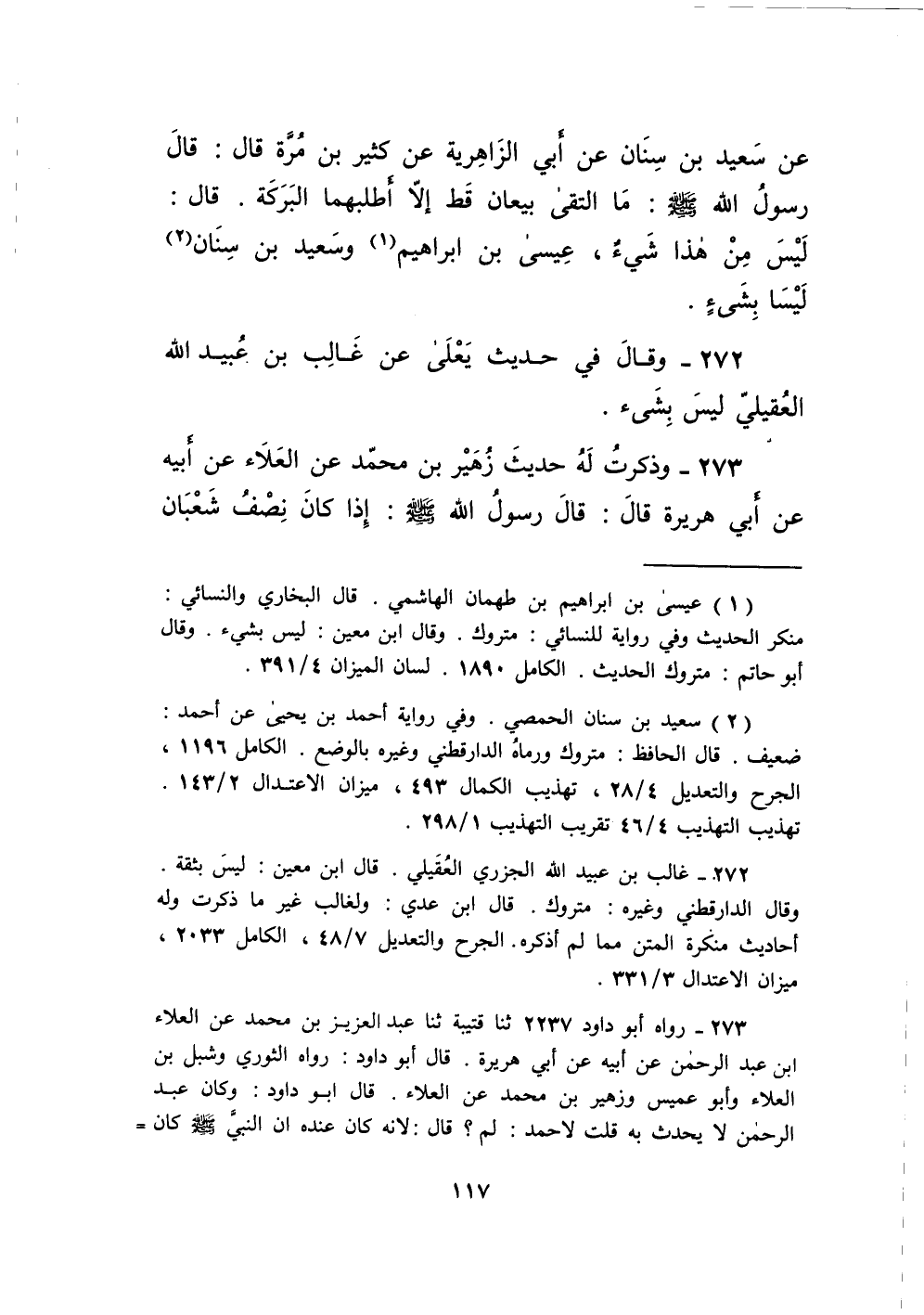 عَنْ سَعِيدِ بْنِ سِنَانٍ عَنْ أَبِي الزَّاهِرِيَّةِ عَنْ كَثِيرِ بْنِ مُرَّةَ قَالَ قَالَ رَسُولُ اللَّهِ صَلَّى اللَّهُ عَلَيْهِ وَسَلَّمَ مَا الْتَقَى بيعان قطّ إِلَّا أطلبهما الْبركَة قَالَ لَيْسَ مِنْ هَذَا شَيْءٌ عِيسَى بْنُ إِبْرَاهِيمَ وَسَعِيدُ بْنُ سِنَانٍ لَيْسَا بِشَيْءٍ