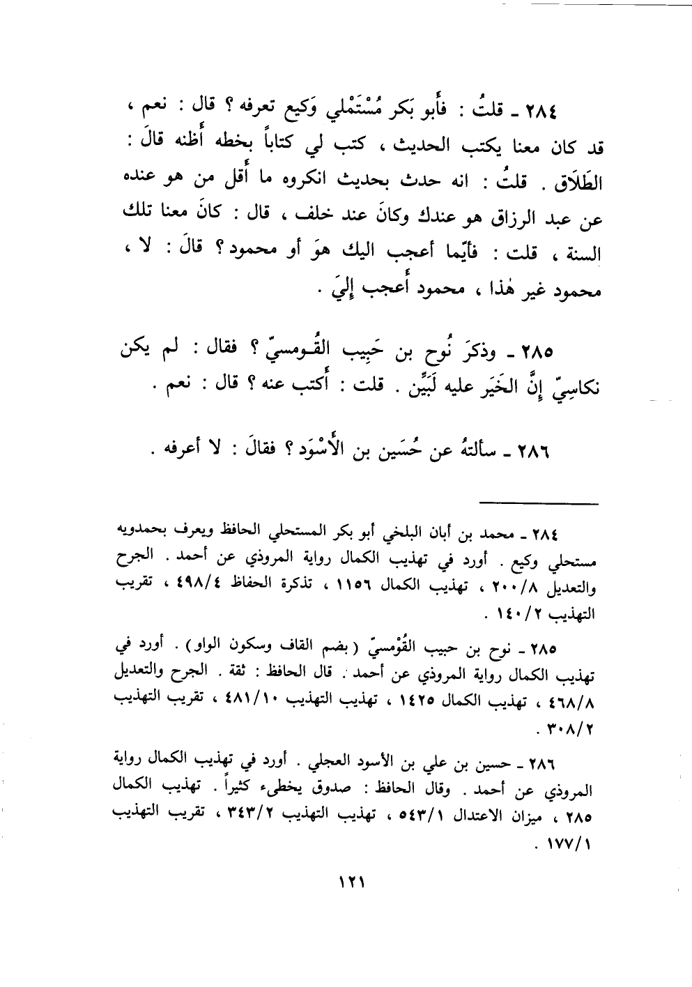 285 - وَذكر نوح بن حبيب القومسي فَقَالَ لم يكن نكاسي إِن الْخَيْر عَلَيْهِ لبين قلت أكتب عَنهُ قَالَ نعم