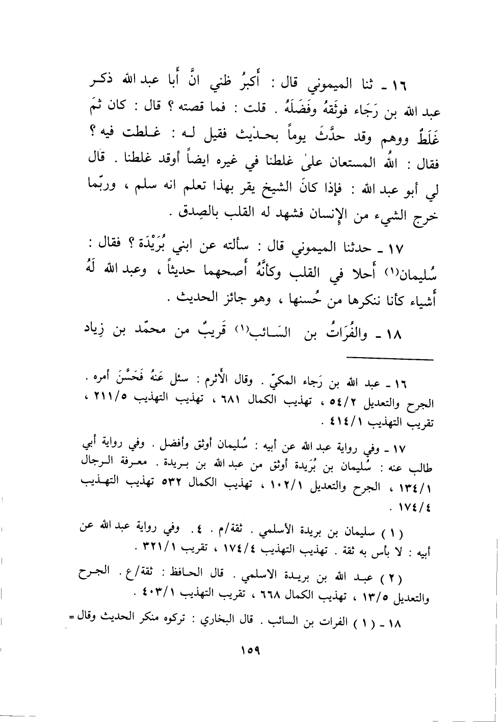 16 - ثَنَا الْمَيْمُونِيّ قَالَ أكبر ظَنِّي أَن أَبَا عبد الله ذكر عبد الله بن رَجَاء فوثقه وفضله قلت فَمَا قصَّته قَالَ كَانَ ثمَّ غلط وَوهم وَقد حدث يَوْمًا بِحَدِيث فَقيل لَهُ غَلطت فِيهِ فَقَالَ الله الْمُسْتَعَان على غلطنا فِي غَيره أَيْضا أوقد غلطنا قَالَ لي أَبُو عبد الله فَإِذا كَانَ الشَّيْخ يقر بِهَذَا تعلم أَنه سلم وَرُبمَا خرج الشَّيْء من الْإِنْسَان فَشهد لَهُ الْقلب بِالصّدقِ