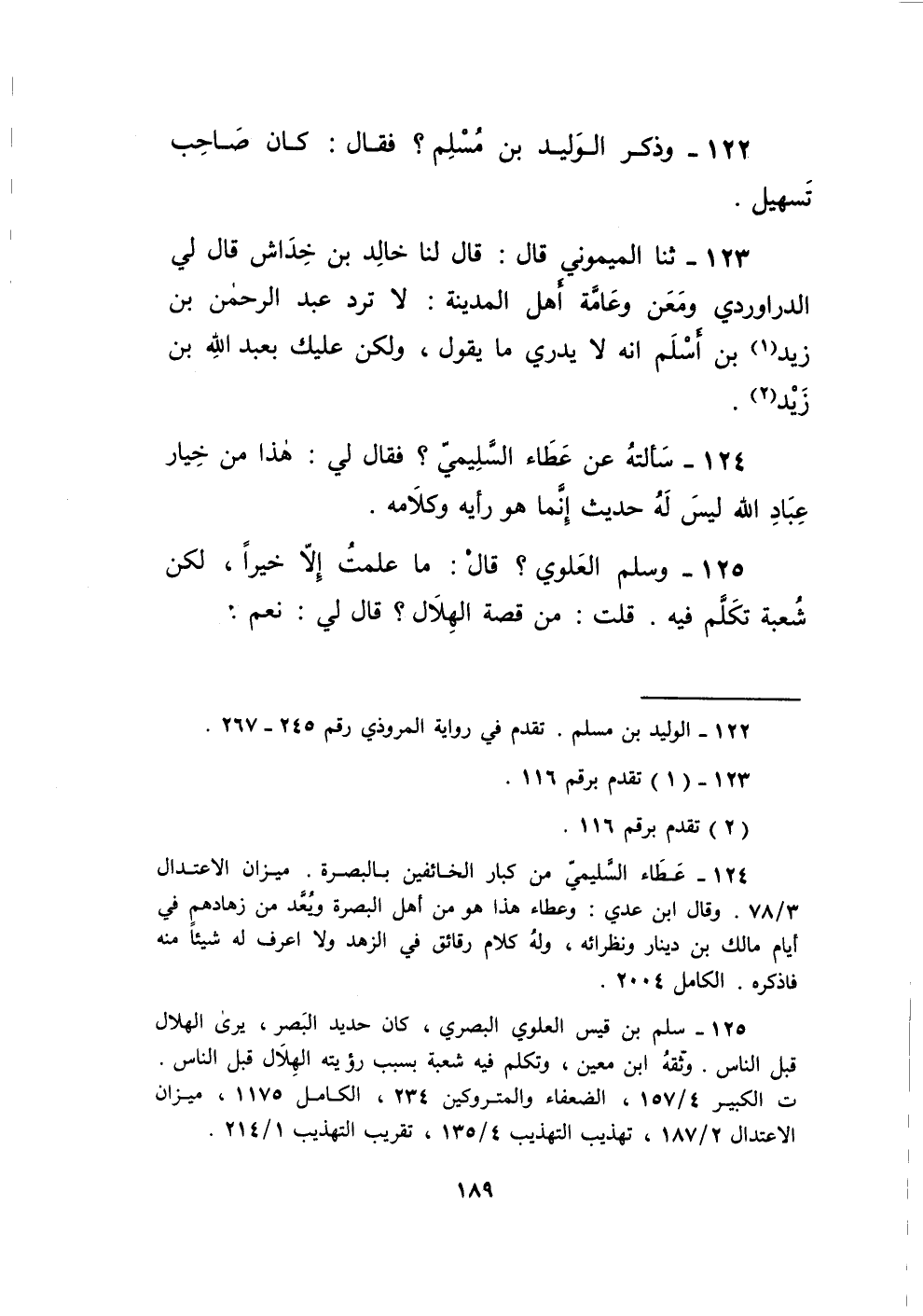 122 - وَذكر الْوَلِيد بن مُسلم فَقَالَ كَانَ صَاحب تسهيل