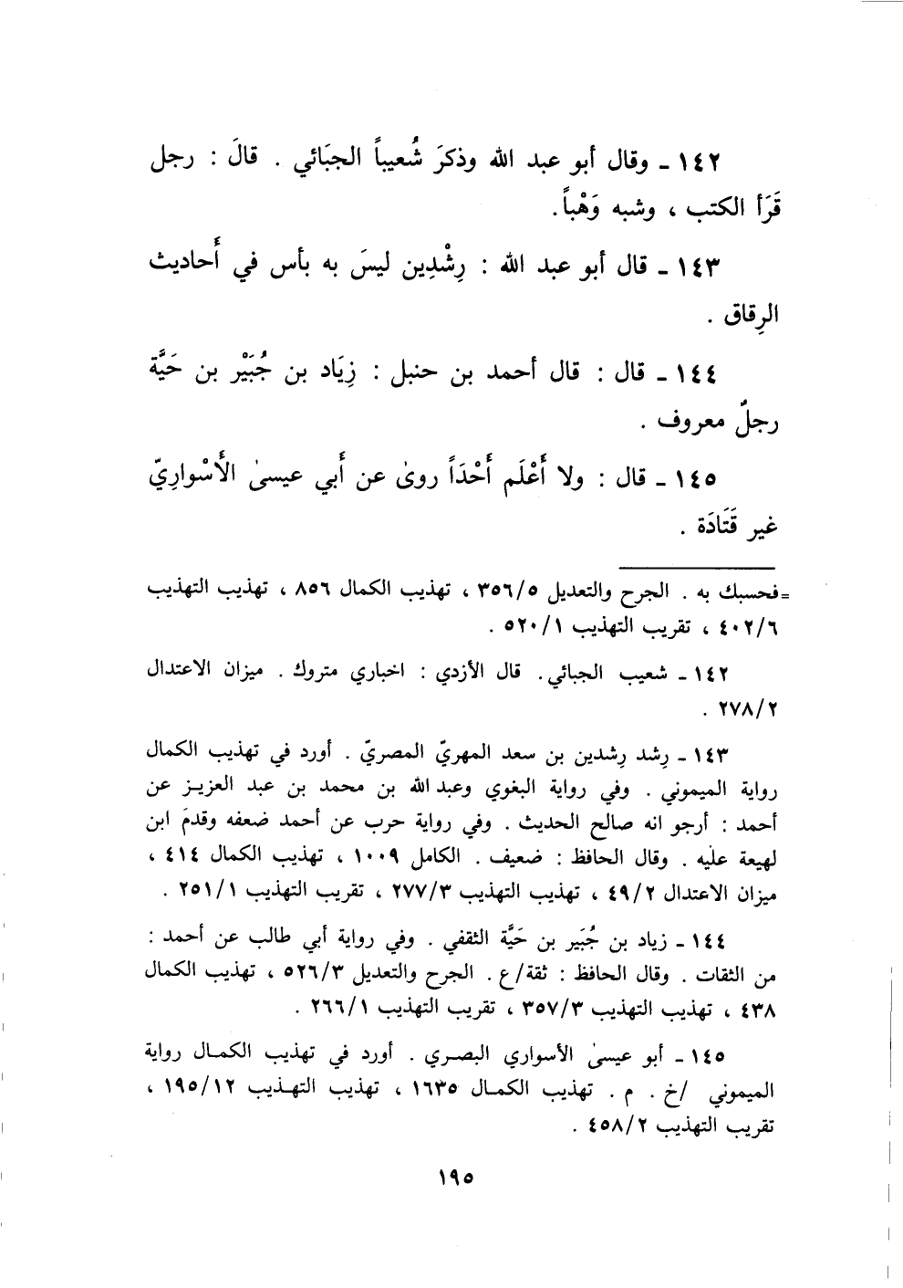 142 - وَقَالَ أَبُو عبد الله وَذكر شعيبا الجبائي قَالَ رجل قَرَأَ الْكتب وَشبه وهبا