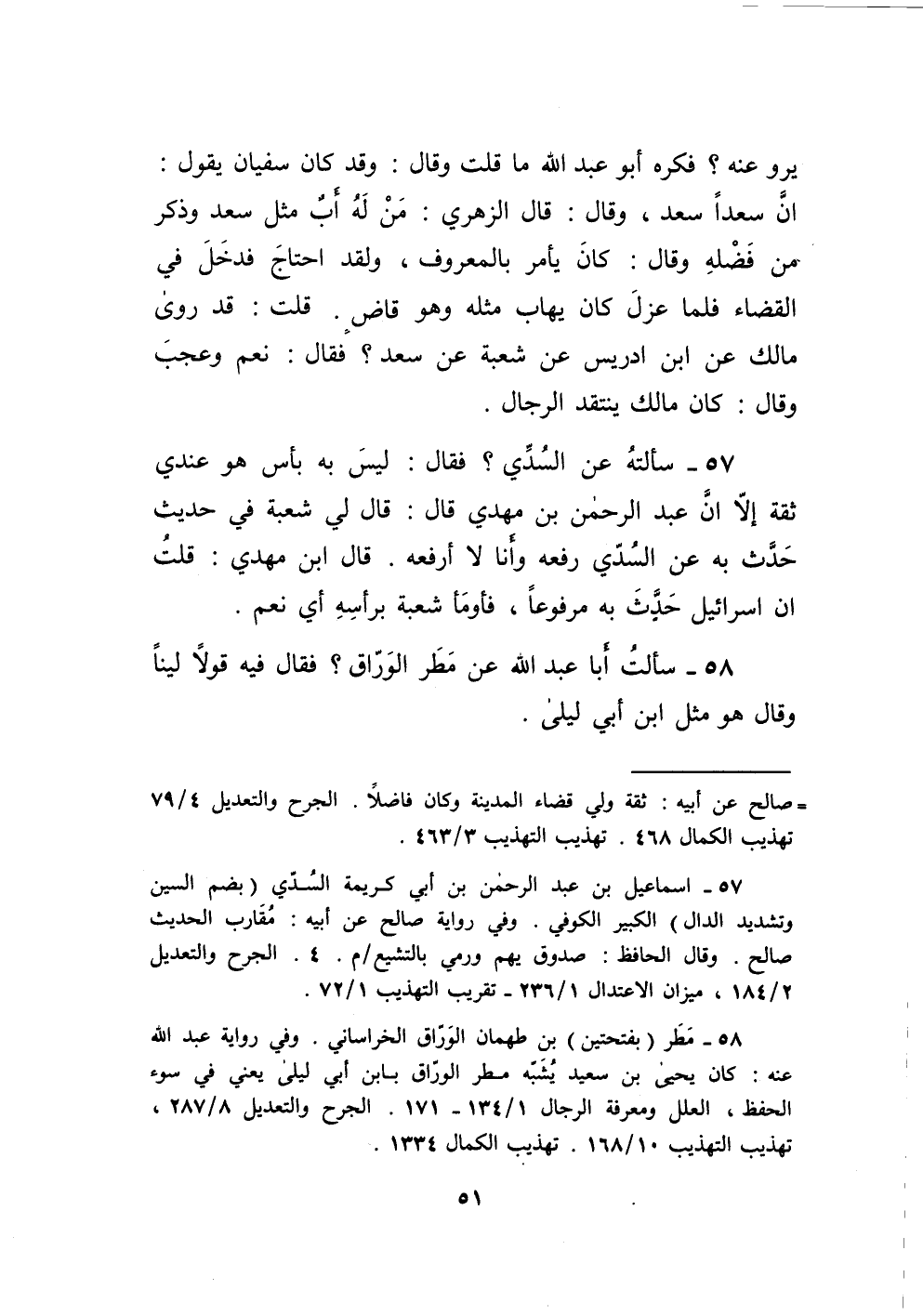 58 - سَأَلت أَبَا عبد الله عَن مطر الْوراق فَقَالَ فِيهِ قولا لينًا وَقَالَ هُوَ مثل ابْن أبي ليلى