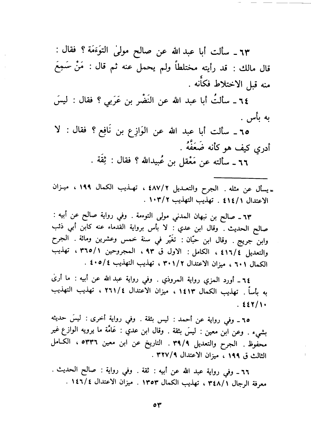 66 - سَأَلته عَن معقل بن عبيد الله فَقَالَ ثِقَة