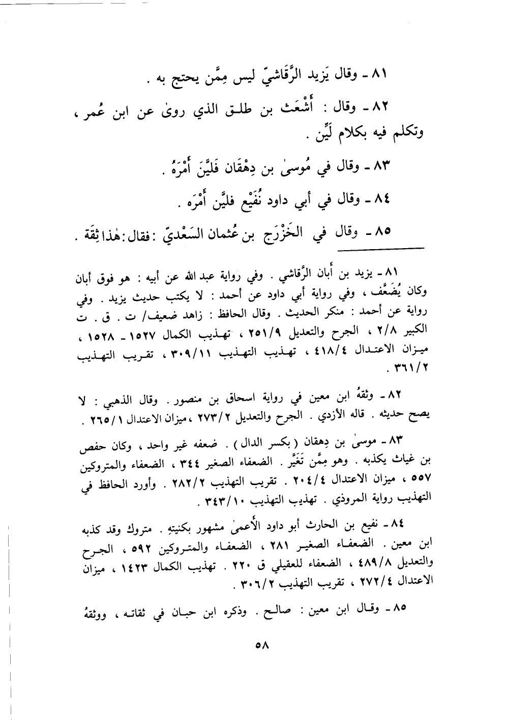 81 - وَقَالَ يزِيد الرقاشِي لَيْسَ مِمَّن يحْتَج بِهِ