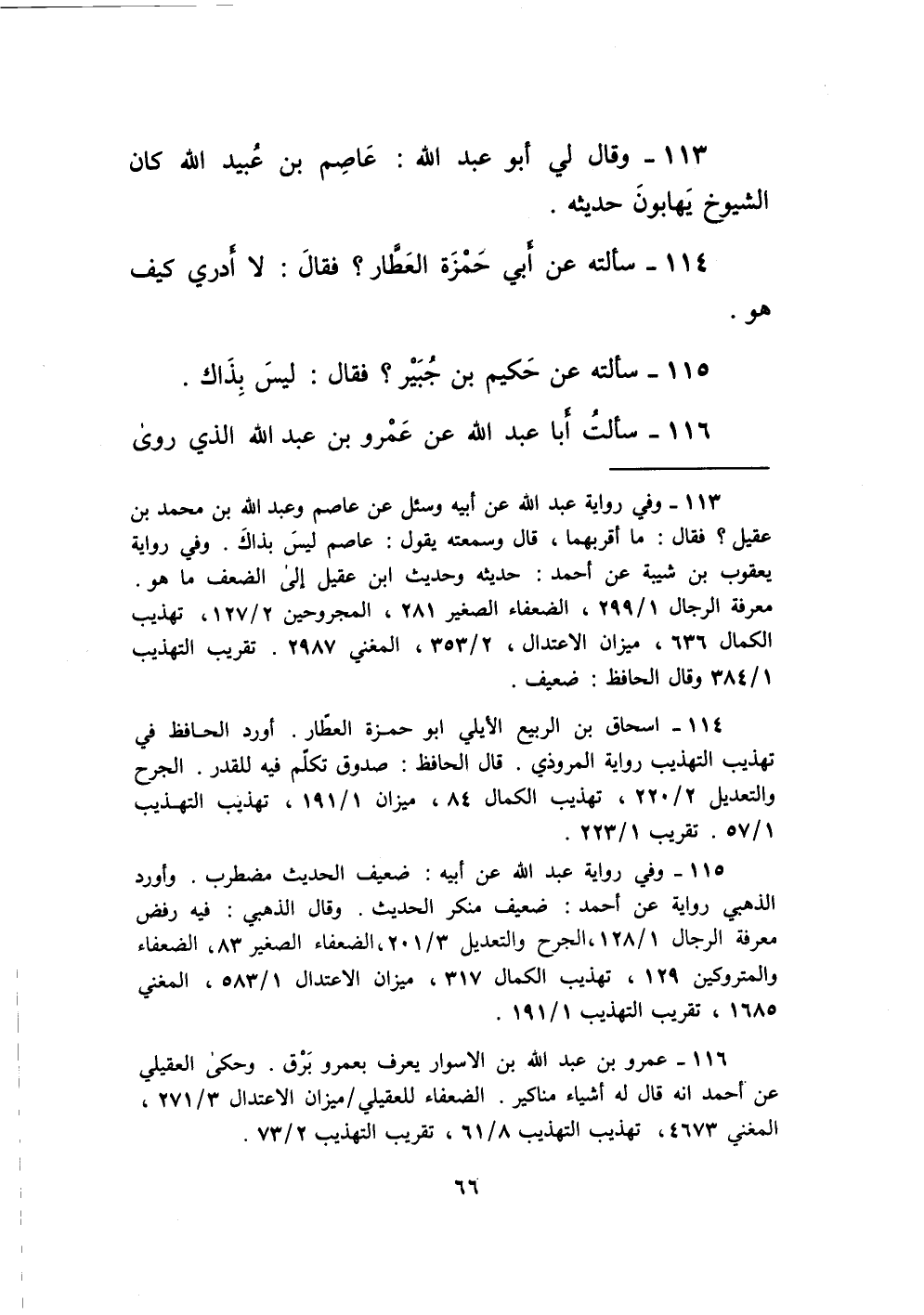 113 - وَقَالَ لي أَبُو عبد الله عَاصِم بن عبيد الله كَانَ الشُّيُوخ يهابون حَدِيثه