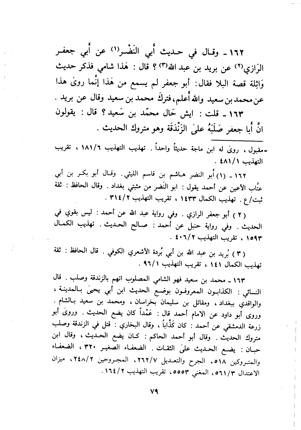 163 - قلت إيش حَال مُحَمَّد بن سعيد قَالَ يَقُولُونَ إِن أَبَا جَعْفَر صلبه على الزندقة وَهُوَ مَتْرُوك الحَدِيث